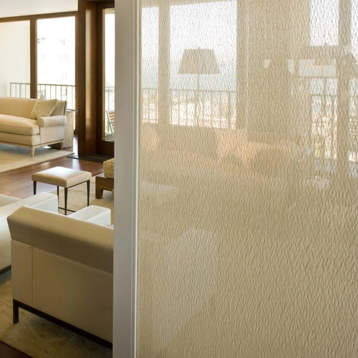 An intriguing surface texture interacts with natural and artificial light to create the feeling of gently flowing movement.